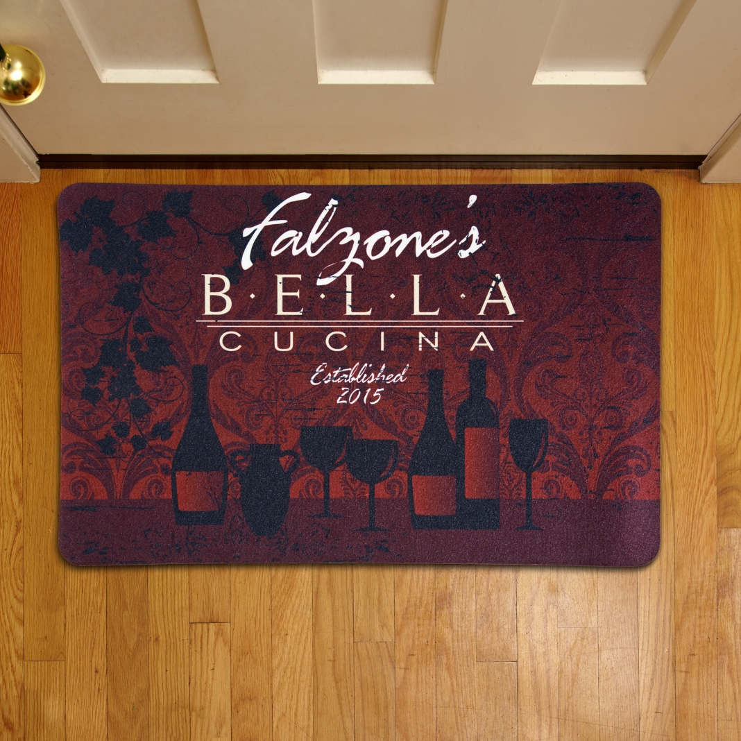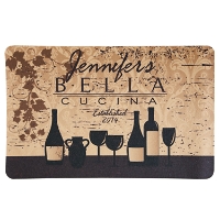 A Personal Creations Exclusive! Create a more comfortable kitchen workspace while accenting her floor with the warmth and charm of old Italy. Our handsome doormat is a celebration of the good food and wine that make her “Bella Cucina” so inviting.