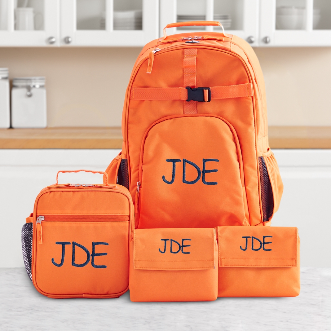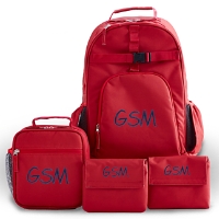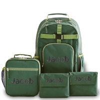 Four times the awesomeness, this super-cool combo has everything your school guy needs to see him through the day. Set includes backpack (large or small) with pockets for water bottles, MP3 player and more, plus contoured, padded straps for comfort and lunchbox straps; lunchbox with food-safe wipe-clean lining, molded interior for hot/cold containers, inner and outer zip and side mesh water bottle pockets; and 2 reusable snack bags with food-safe linings--all in his choice of ultra-cool colors. Durable 600-denier polyester. Quality embroidered lettering.