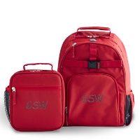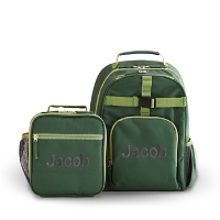Two times the awesomeness, this cool combo has everything your school guy needs to see him through the day. Set includes backpack (large or small) with pockets for water bottles, MP3 player and more, plus contoured, padded straps for comfort and lunchbox straps; and lunchbox with food-safe wipe-clean lining, molded interior for hot/cold containers, inner and outer zip and side mesh water bottle pockets--both in his choice of ultra-cool colors. Durable 600-denier polyester. Quality embroidered lettering.