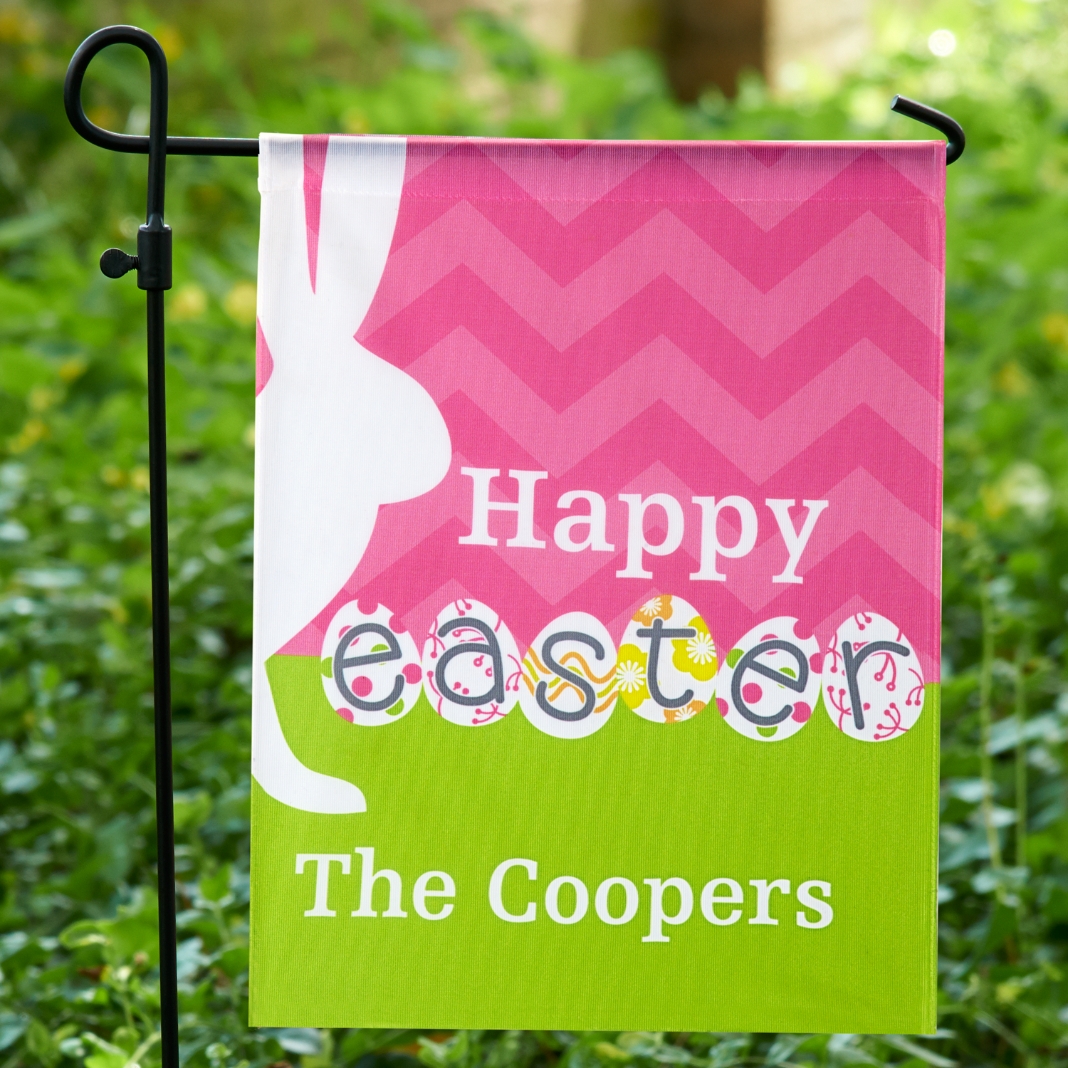 Imagine how exquisite your blooming spring garden will look accented with this pretty Easter garden flag! It features the darling silhouette of a bunny and a warm greeting for all who visit. Exclusively from Personal Creations.