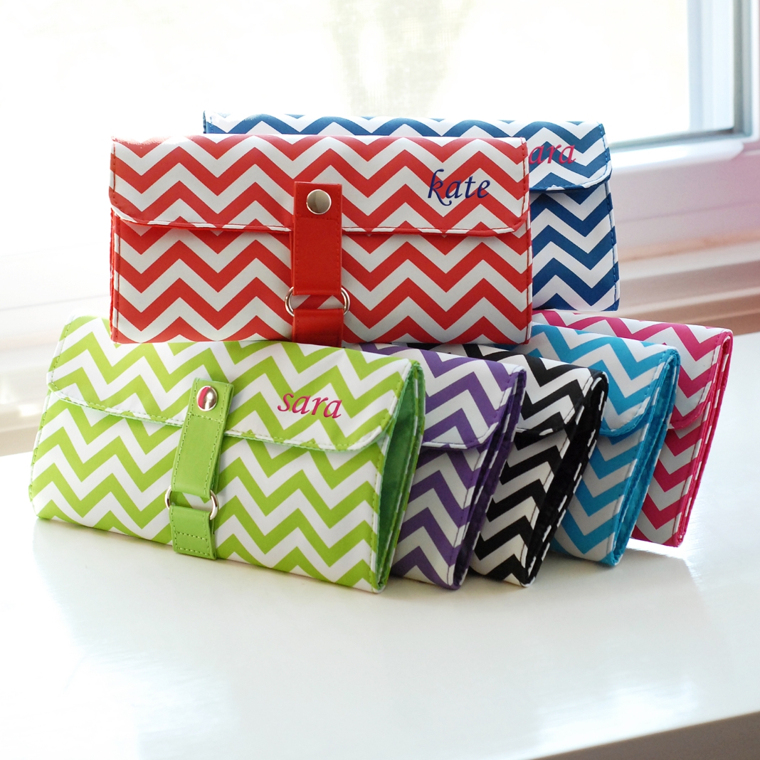 Our Chevron Makeup Roll Brush Set is the one accessory no girl can go without! Brightly colored, chevron-print exteriors complemented by solid-hued interiors combine to make these the ideal combination of over-the-top style and under-budget appeal.