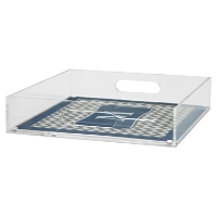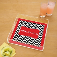 Versatile square tray is great for entertaining or for everyday use. We personalize it with any name, up to 12 characters, or any single initial. Choose from black, blue, brown, burgundy or gray design. Personalization is in the color shown. Crafted of gleaming high-grade acrylic, it features cut-out handles and protective pads on bottom. Measures 12”L x 12”W x 2-1/4"H. Hand wash.