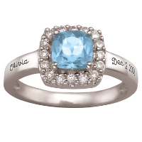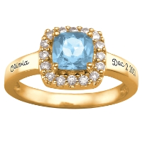 A ring this dramatic and sophisticated will get noticed wherever she goes. It features a beautifully colored birthstone, elegantly cushion-cut and surrounded by dazzling cubic zirconia stones. We make it a sentimental favorite by beautifully engraving the band.