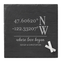 This beautiful server is sure to put your next party on the map—in more ways than one. The engraved coordinates point to a place with special meaning for you as a couple, while the elegant slate is an upscale way to offer up gourmet party fare.