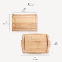 - Small board measures 18"Lx12"W; Large board measures 20"Lx14"W
