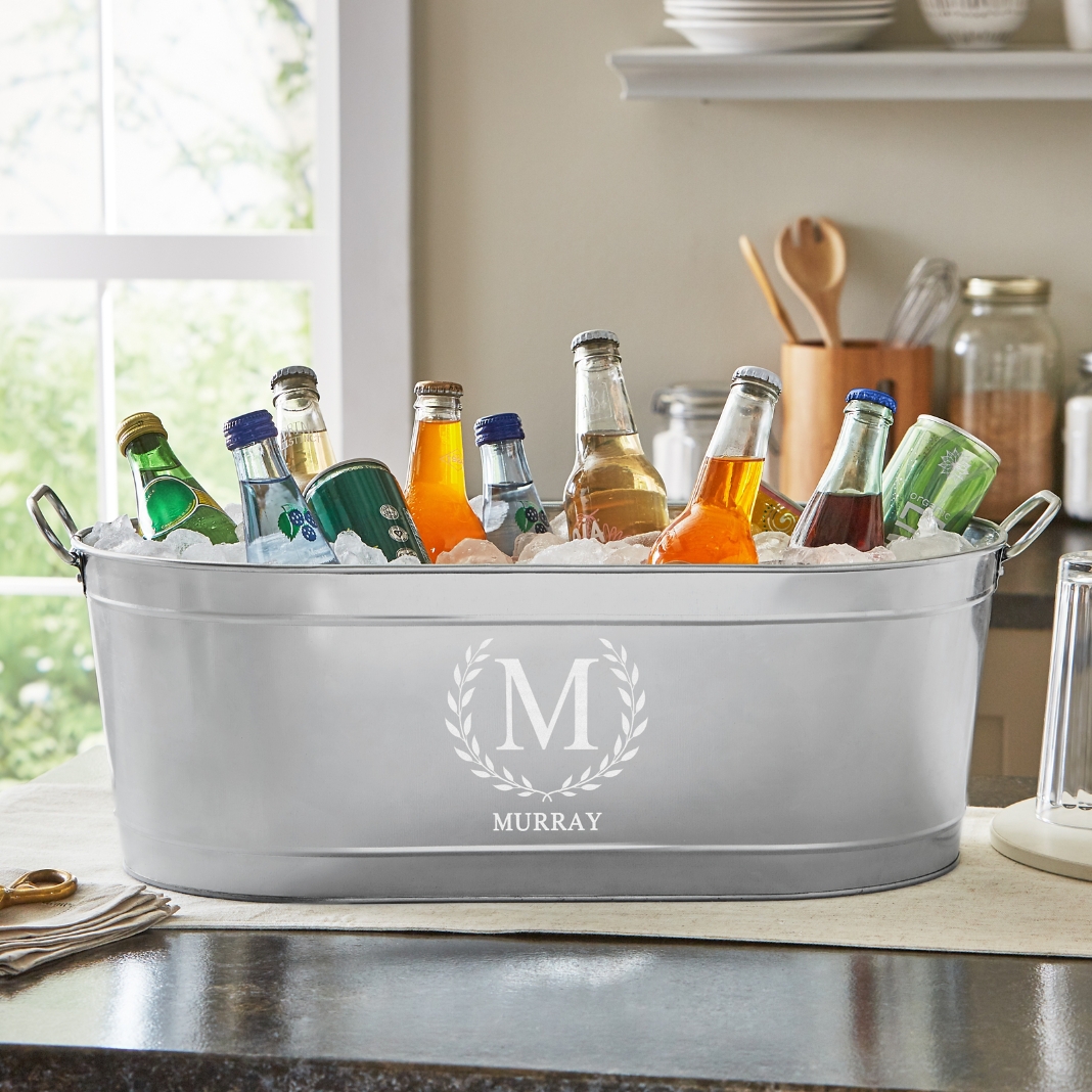 A beverage by any other name, still tastes as sweet! Add your name and monogram to this custom beverage tub to keep drinks cold and ready for all your celebrations.