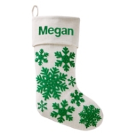 Classic with a twist of winter wonder, this snowflake stocking brings a snowy sparkle to your mantel. It's roomy enough for candy, trinkets and all the little surprises that make Christmas morning magical.