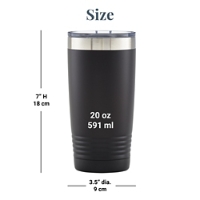 • Tumbler holds 20 oz., measures 7”Hx3.5” dia.; wine tumbler holds 12 oz., measures 5"Hx4" dia.