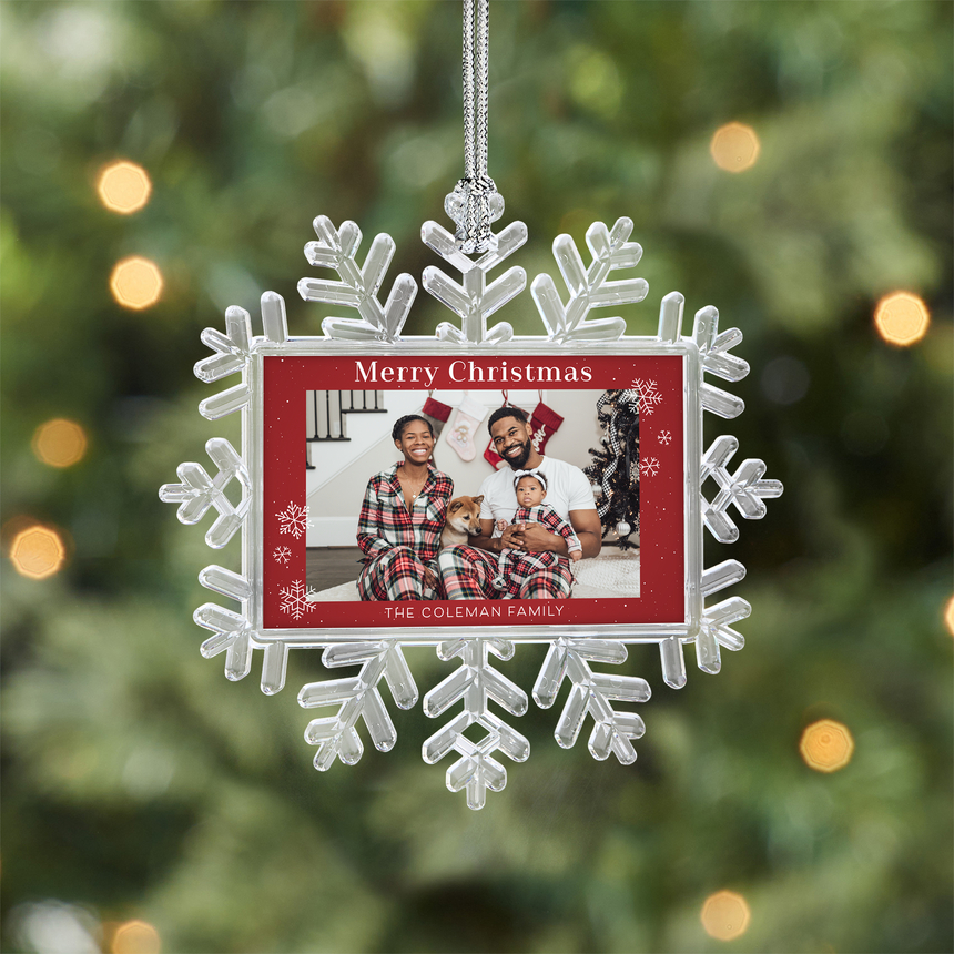 Merry Christmas Double-Sided Photo Snowflake Ornament