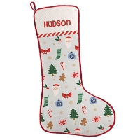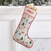 Add some jolly personality to your fireplace with this playful, custom stocking. It's perfect for filling with sweet surprises and festive cheer.