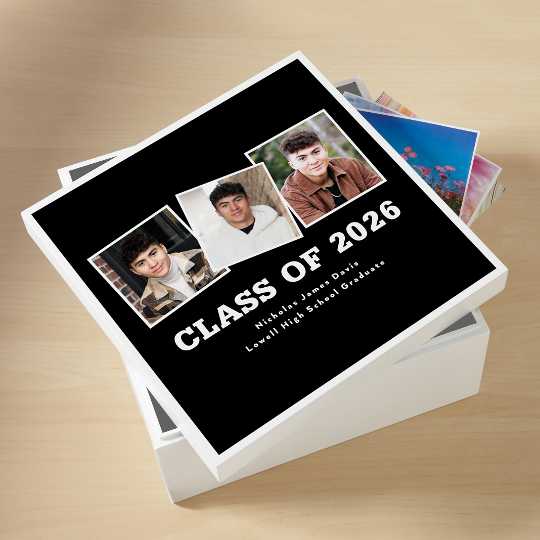 Honor the journey and the milestones along the way with a graduation photo keepsake box. A perfect place to store photos, notes and memories worth revisiting.