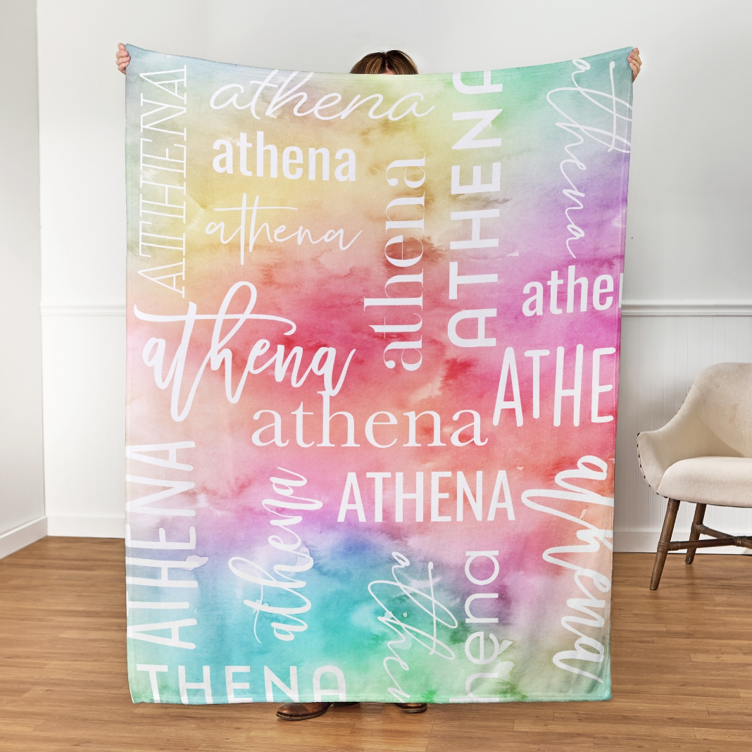 Soft, snuggly and made just for them. The “Watercolor Name” plush blanket wraps your favorite name in dreamy color and cloud-like comfort. Perfect for couch cuddles, movie marathons or afternoon naps, it’s basically a warm hug with a personal touch.