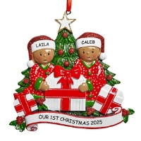The best part of Christmas morning? Looking under the tree and opening presents! Keep that special feeling alive year after year with this sweet couple ornament to hang on your tree.