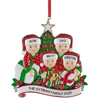 The best part of Christmas morning? Looking under the tree and opening presents! Keep that special feeling alive year after year with this sweet family ornament to hang on your tree.