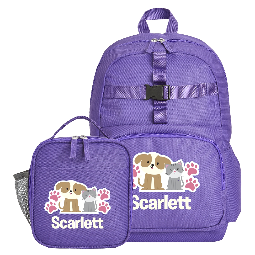 Fun Graphic Purple Backpack + Lunch Box Set - Puppy+Kitten