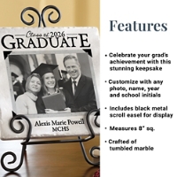 Our tumbled marble photo tile is a handsome reminder of their accomplishment.