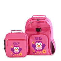 Put an extra giggle in her day with this adorable stand-out-from-the-crowd collection. Choose from backpack (large or small) with pockets for water bottles, MP3 player and more, plus contoured, padded straps for comfort and lunchbox straps; lunchbox with food-safe wipe-clean lining, molded interior for hot/cold containers, inner and outer zip and side mesh water bottle pockets; or 2 reusable snack bags with food-safe linings--all in her choice of 4 all-girl colors and designs. Get the entire set and save!