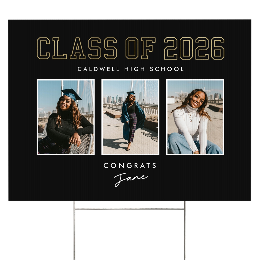 Golden Trio Graduation Photo Yard Sign - 2 sided