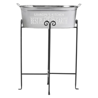 - Convenient iron stand (25"H) holds tub at easy serving height and folds flat for easy storage