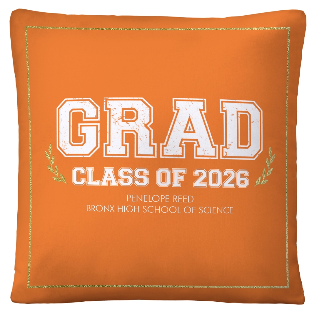 Graduation Scroll School Colors Throw Pillow - 16x16- Orange