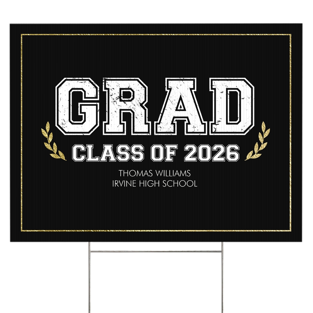 Graduation Scroll School Colors Yard Sign - 2 sided - Black