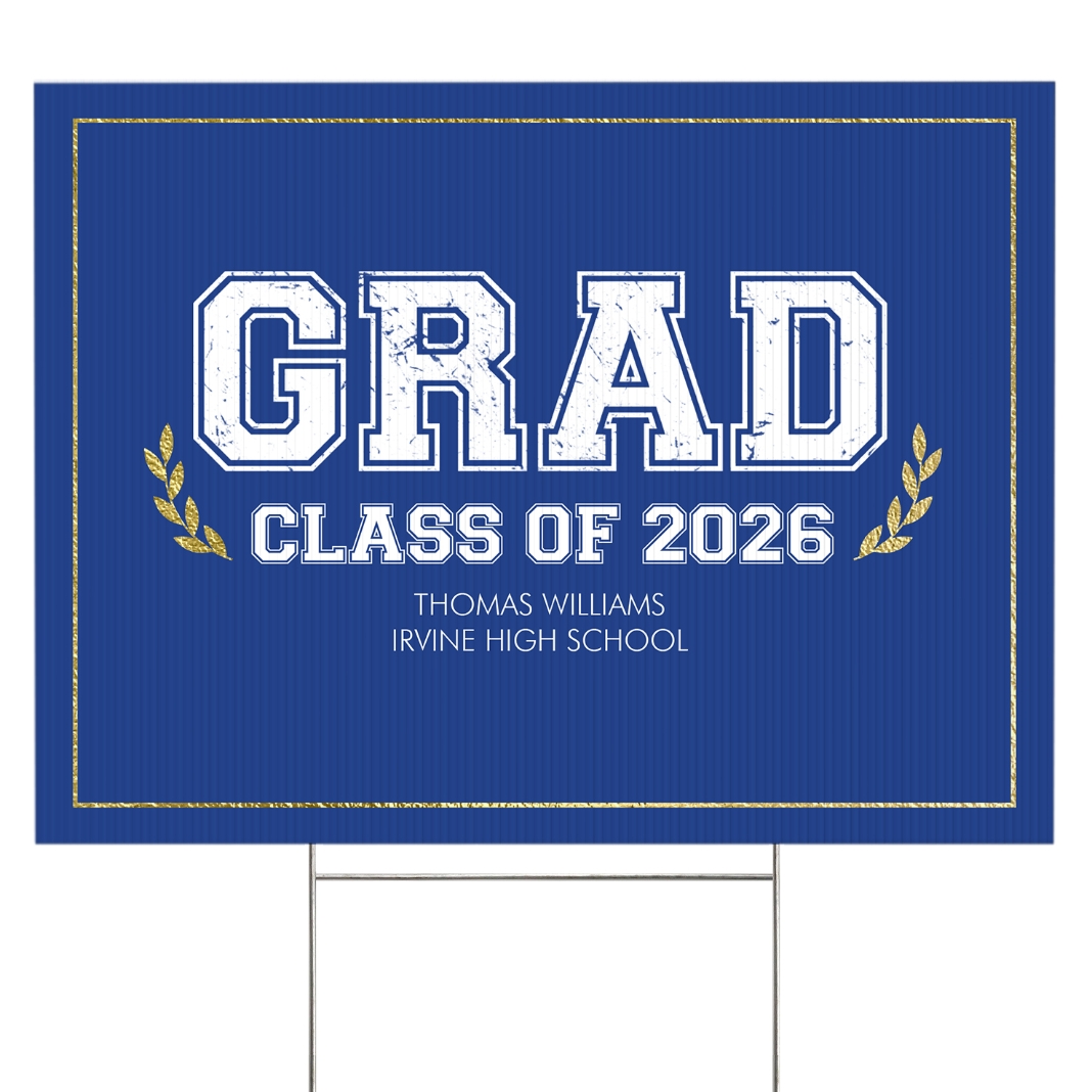 Graduation Scroll School Colors Yard Sign - 2 sided - Blue