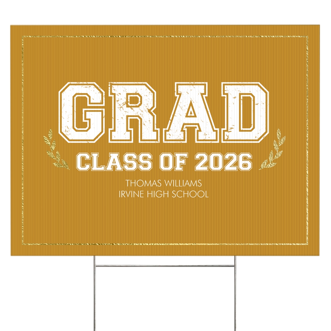 Graduation Scroll School Colors Yard Sign - 2 sided - Gold
