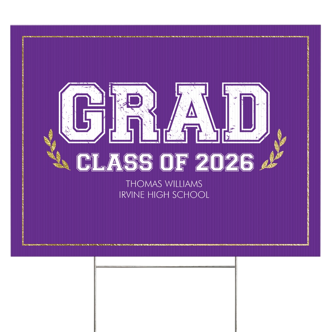 Graduation Scroll School Colors Yard Sign - 2 sided - Purple