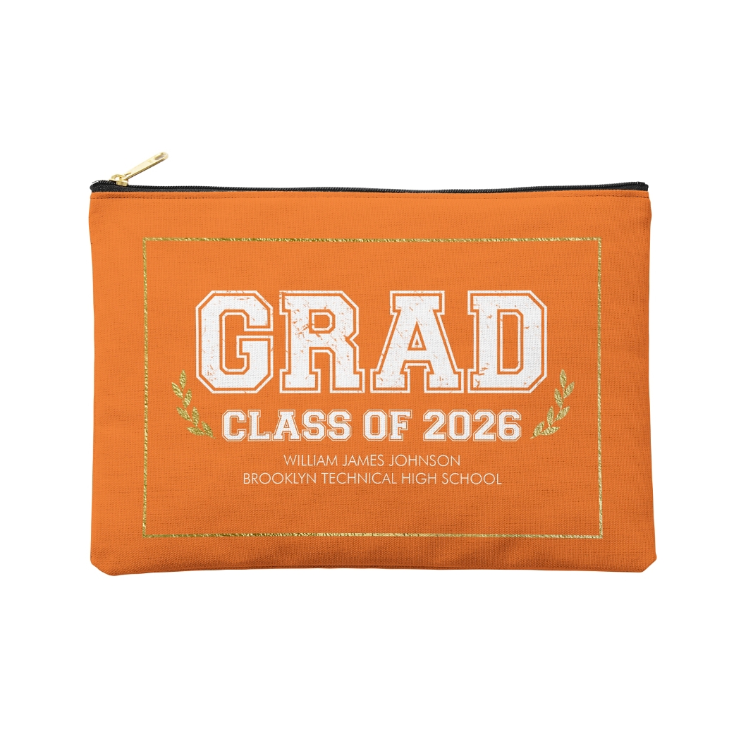 Graduation Scroll School Colors Zipper Pouch -Large - Orange