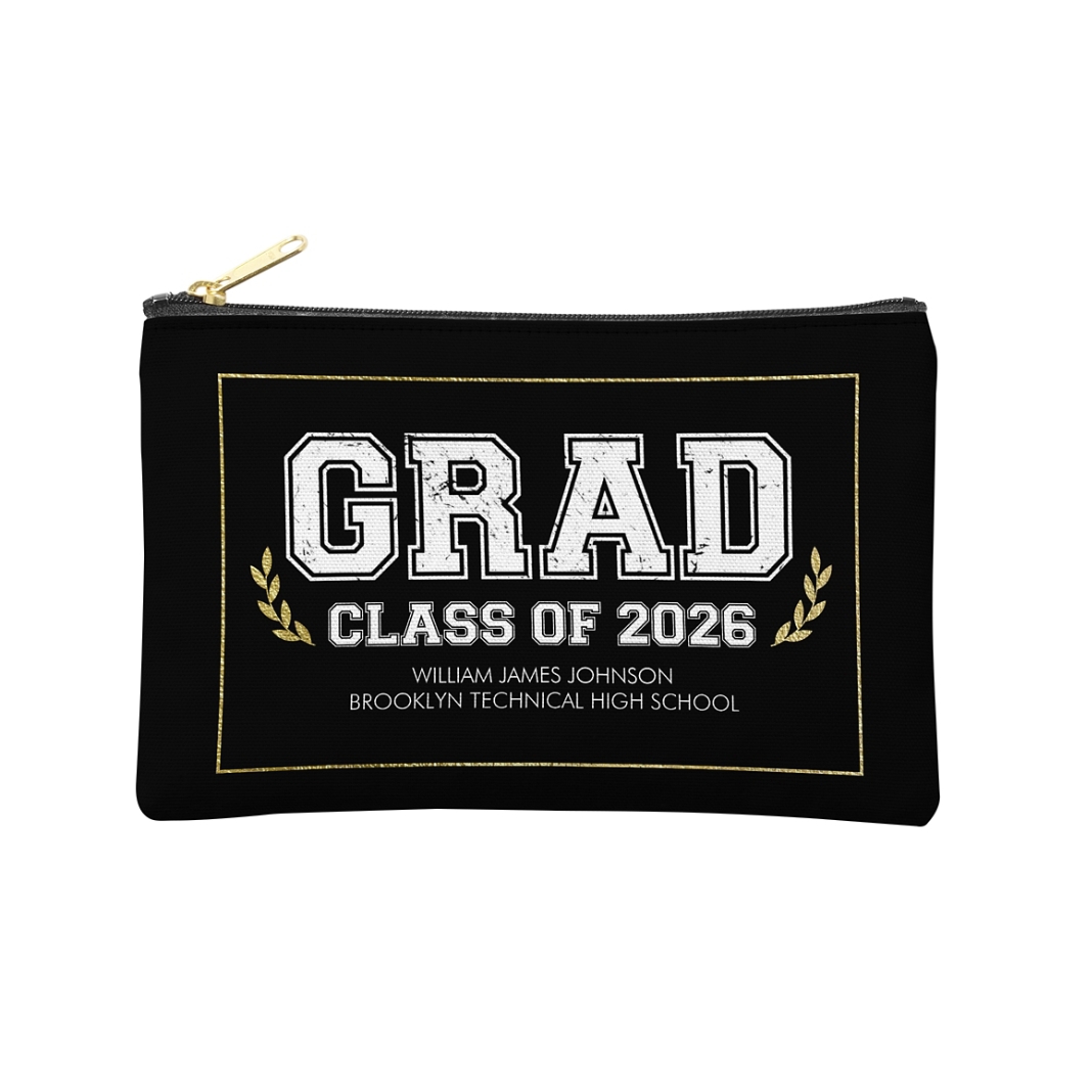 Graduation Scroll School Colors Zipper Pouch -Small - Black