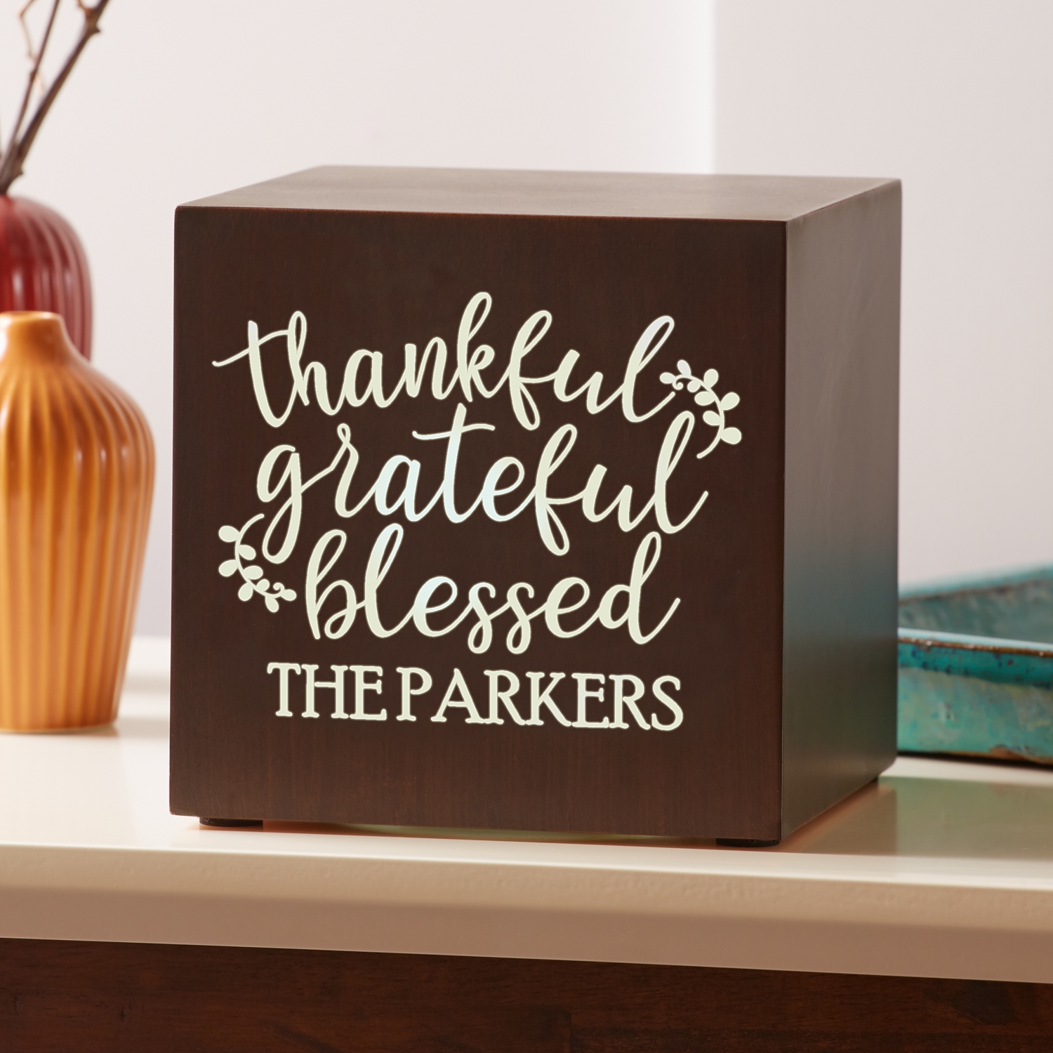 Grateful, Thankful, Blessed LED Light-Up Cube