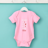 A Personal Creations Exclusive! Letters of the alphabet hold a message of love! Bodysuit is made of a soft 100% cotton fabric and features snap convenience in sizes 6, 12, 18 and 24 mos. T-shirt is made of a soft 100% cotton fabric in sizes 4T and 5/6. We personalize it with any name, up to 10 characters. Machine washable.