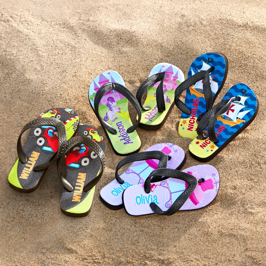 The most convenient footwear possible for active kids on the go, our sensational flip-flops feature an imaginative design that captures their passion.