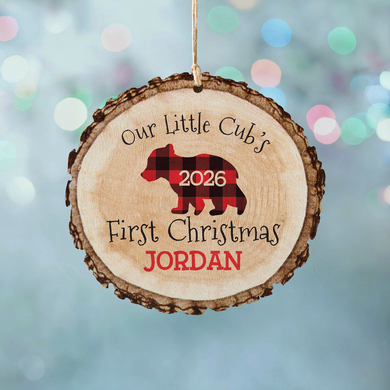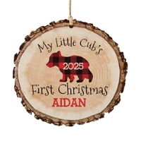 Little Cub's First Christmas Rustic Wood Round Ornament
