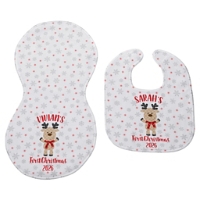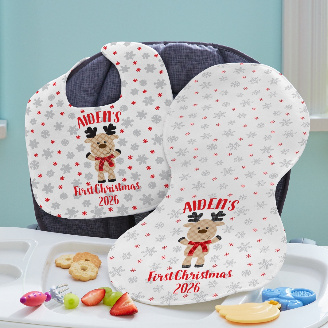 When baby takes a lunch break during the holiday fanfare, this personalized bib and burp cloth will keep them clean and ready for holiday snaps!