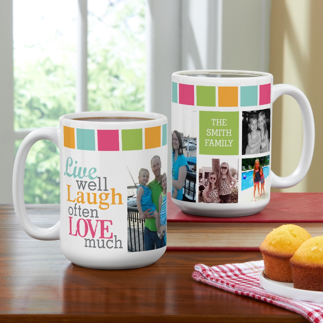 Embrace life, laughter and love with a mug filled with precious family memories.