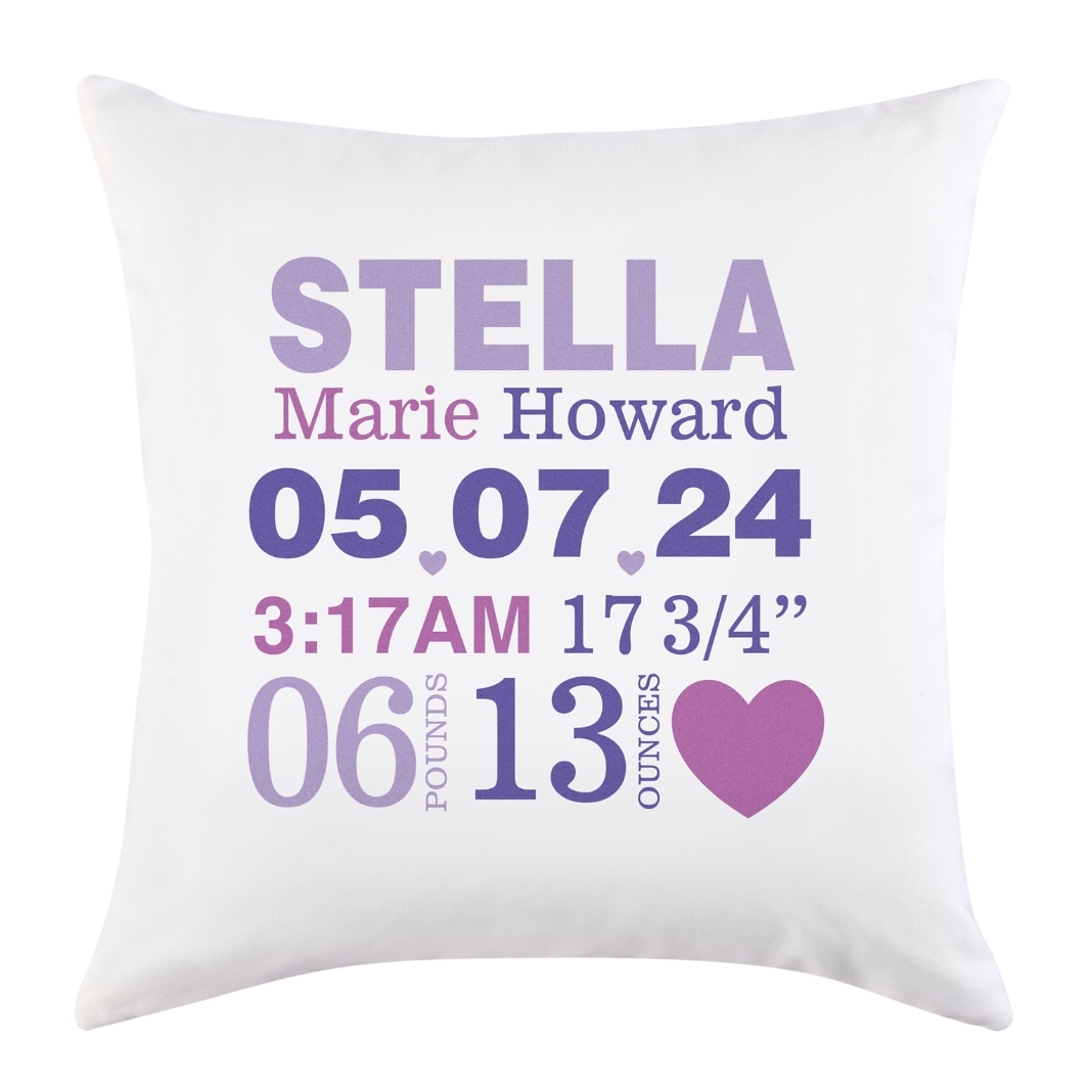 Celebrate your new arrival with a colorful accent for baby’s room, featuring every important detail of their birth.