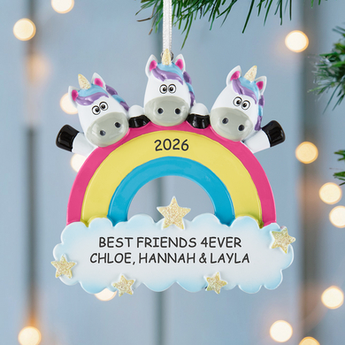 Celebrate the magic of best friends and family with these colorful rainbow ornaments!