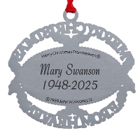 A thoughtful gift for those spending Christmas without a loved one, our remembrance ornaments feature the final verse of the comforting "Merry Christmas From Heaven" poem.