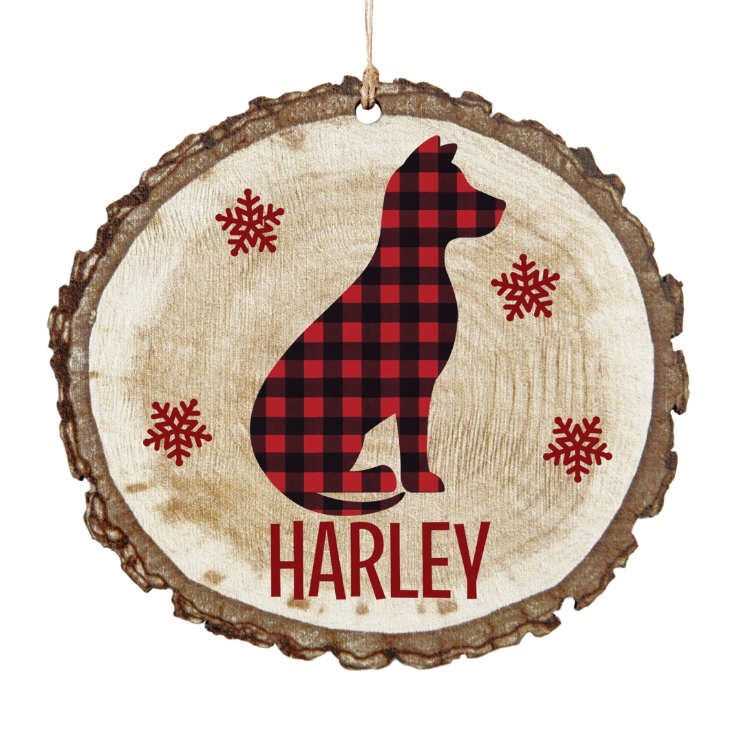 Perfectly Plaid Rustic Wood Round Ornament - Dog