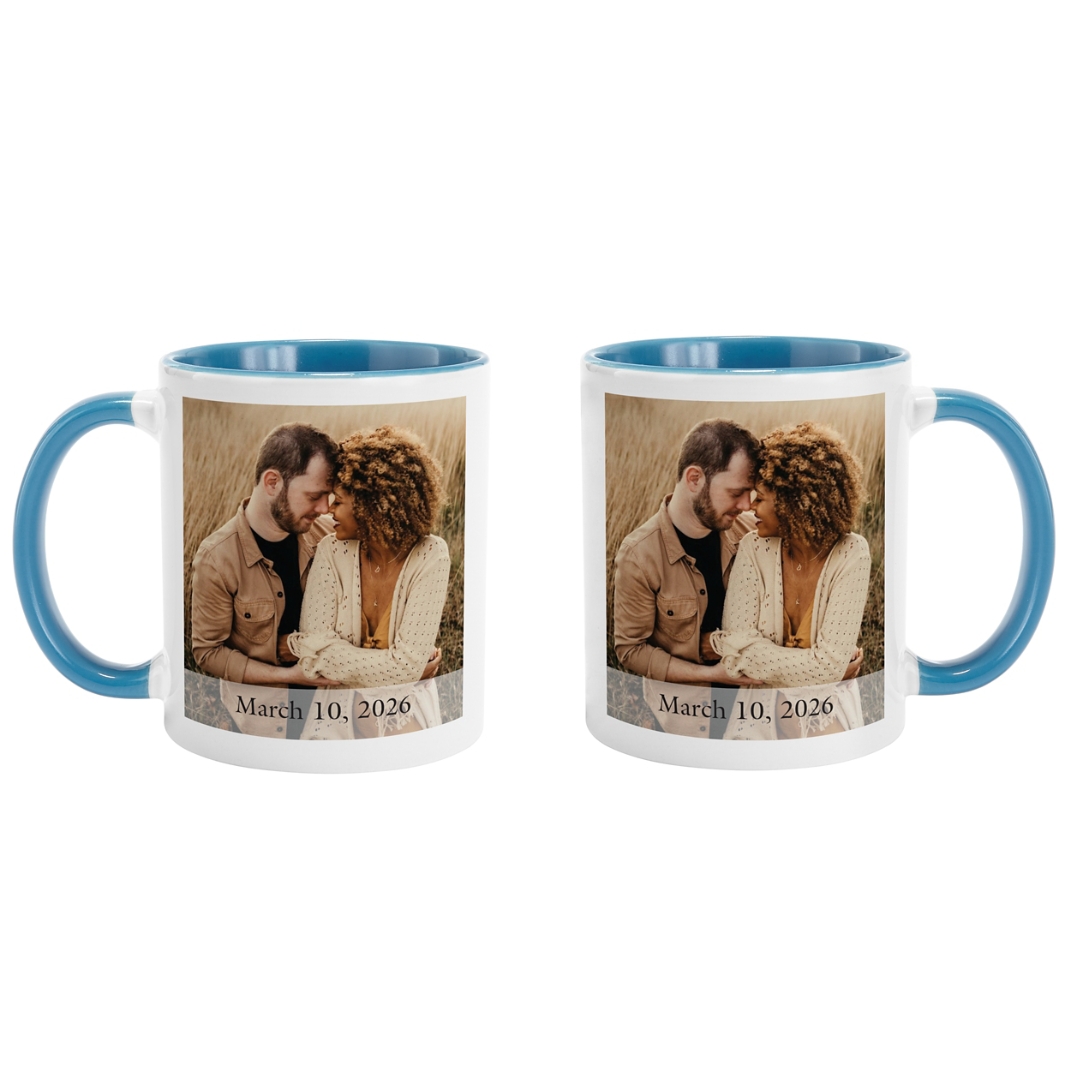 Picture-Perfect Photo Mug w/Message - 11oz w/Light Blue Handle