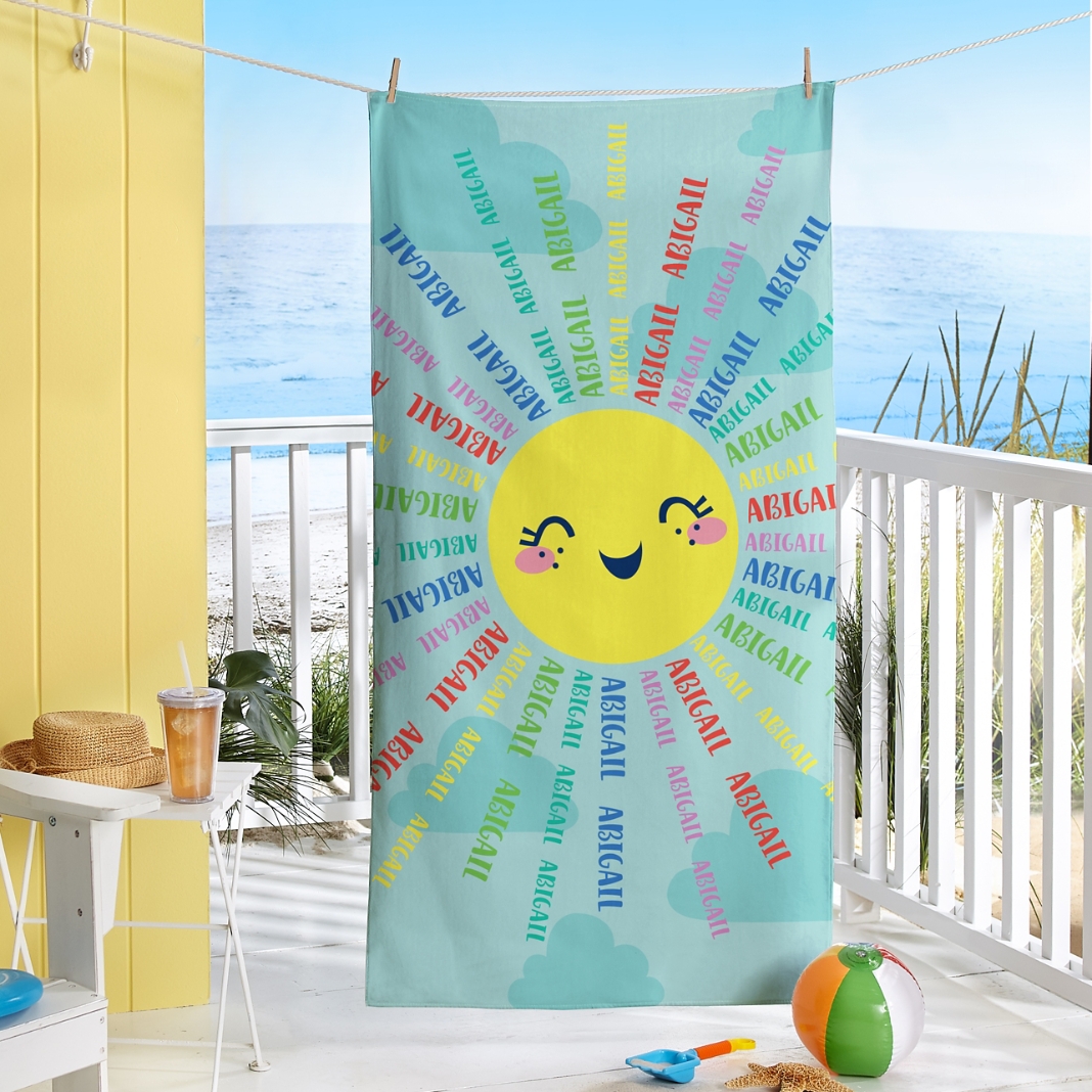 For your sweet little ray of sunshine. They'll stay dry and cozy on every summer outing with this personalized, oversized beach towel.