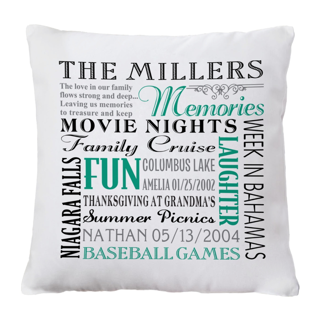 From a fun vacation to a special song, use your favorite memories to create this one-of-a-kind pillow the whole family will cherish.