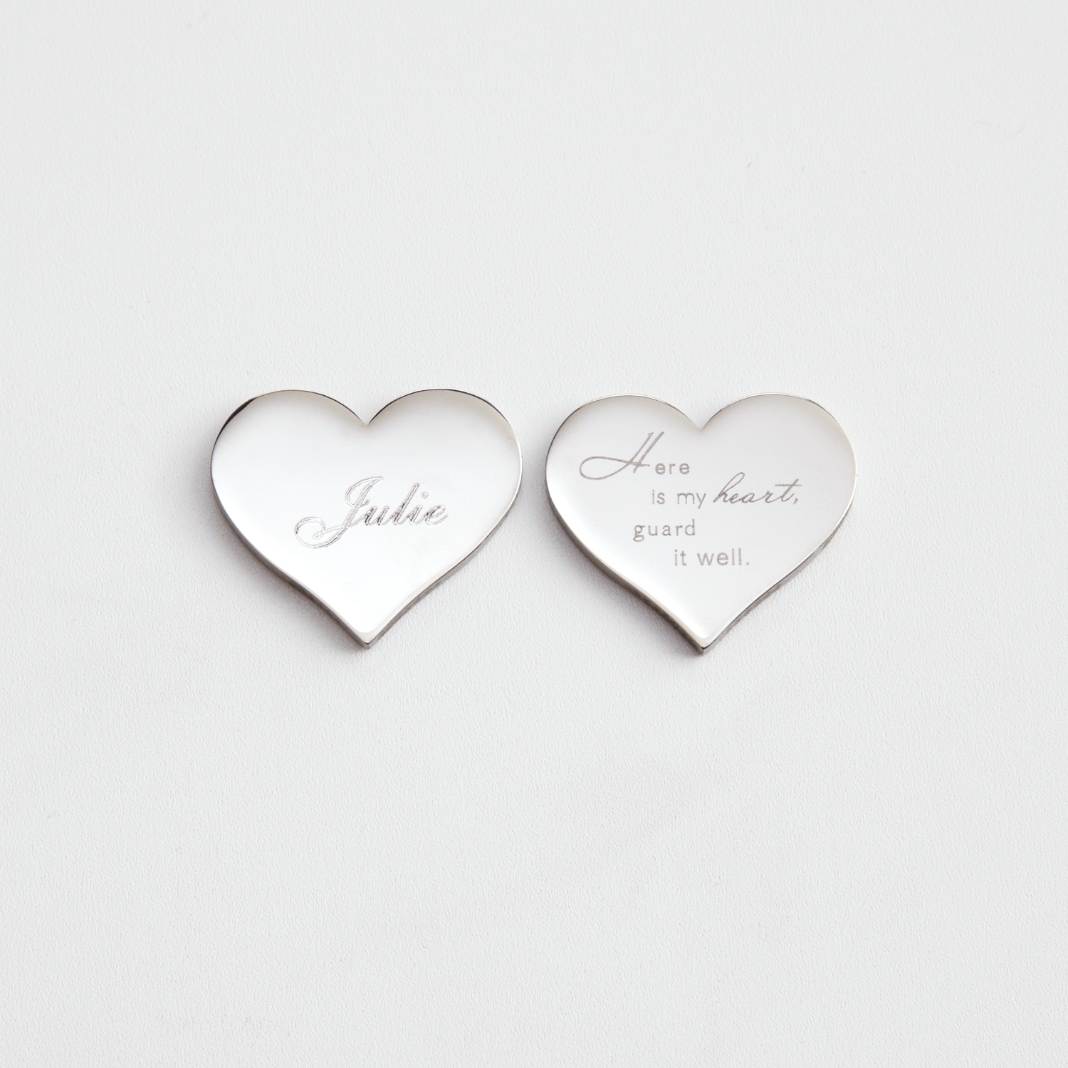 Here’s a tie he’ll always look forward to putting on. Handmade with tonal diagonal stripes, our classic secret message tie is 100% silk (and 100% romantic.) There’s a special pocket on the back where you can tuck secret love notes for him to find. Twenty five paper hearts are included for your messages, as well as a polished nickel heart charm engraved with the romantic sentiment “Here is my heart, guard it well.”
