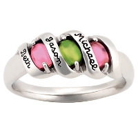 Striking ring features the names and birthstones of her loved ones set among ribbons of gleaming 10k yellow gold or sterling silver. We artfully engrave up to 7 names to make it a touching reminder of your appreciation for her.