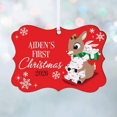 Oh a-sledding they will go! Capture the magic and merriment of baby’s first Christmas with this nostalgic keepsake ornament.