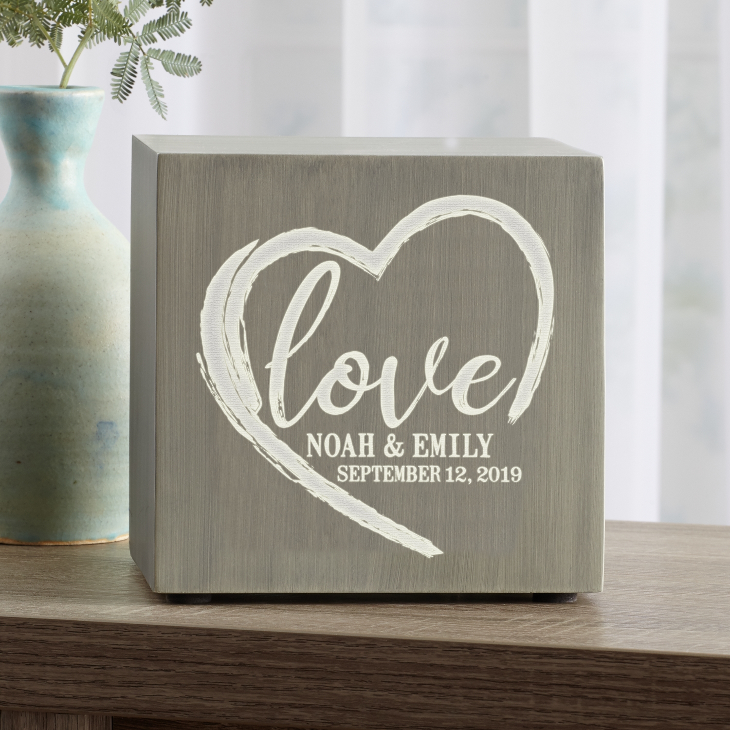 A Personal Creations Exclusive! Switch on our light-up cube and spread some love! The contemporary design will add a warm, romantic accent to your home (or office) décor.