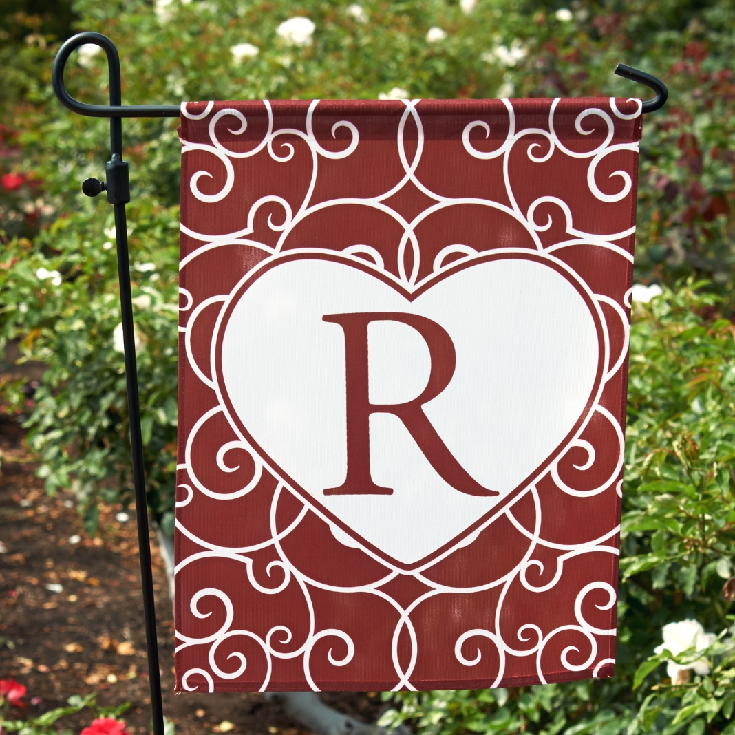Scroll Heart Initial Garden Flag