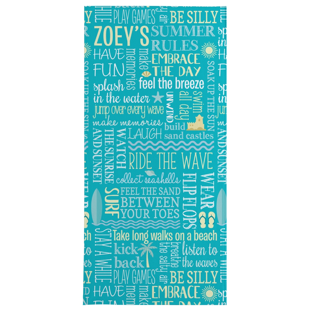 Heading to the beach? Our towel promises to remind everyone of the official “rules” that guarantee a summer filled with sun and fun. Exclusively from Personal Creations.