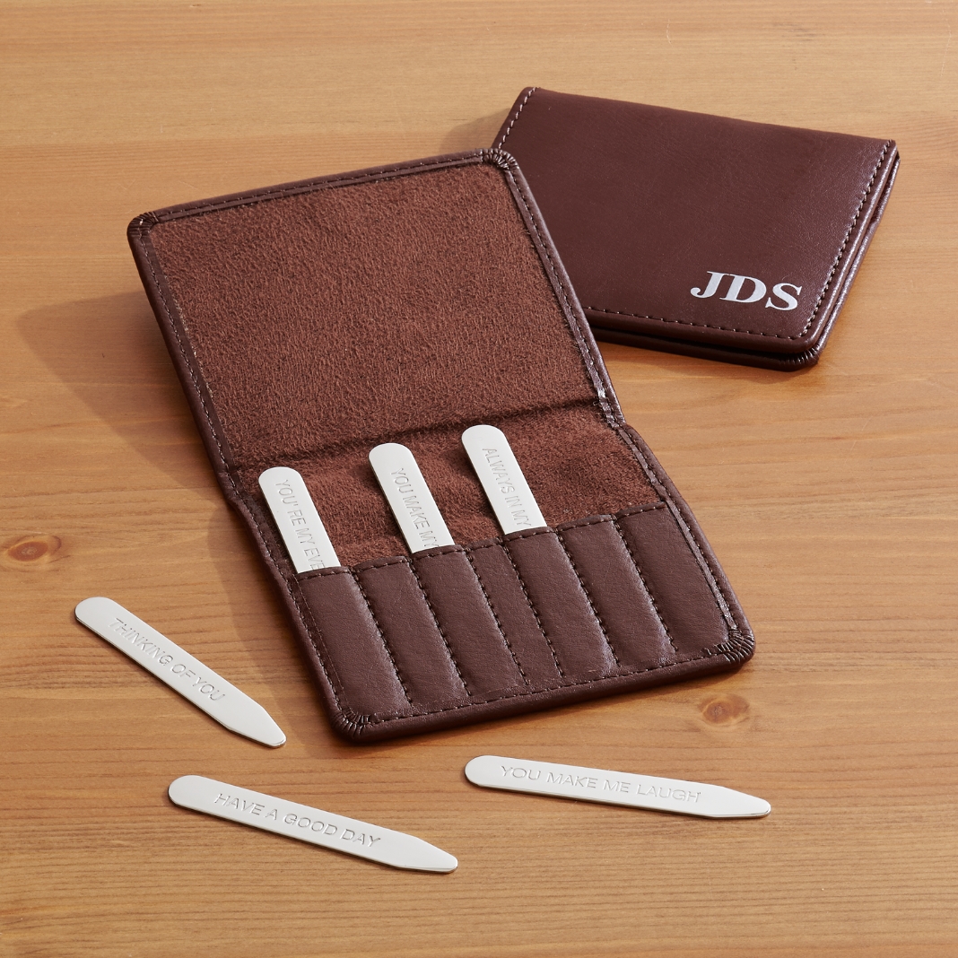 Give him an extra reason to smile when he gets dressed. Each stainless steel collar stay includes a unique message that he’ll think about all day.